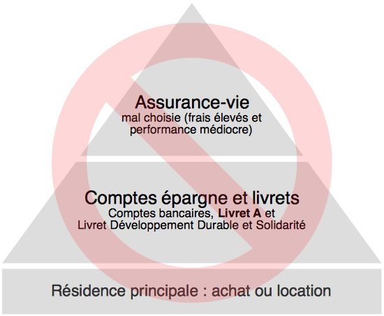 - À la base, on retrouve l’épargne de précaution qui doit être faible.