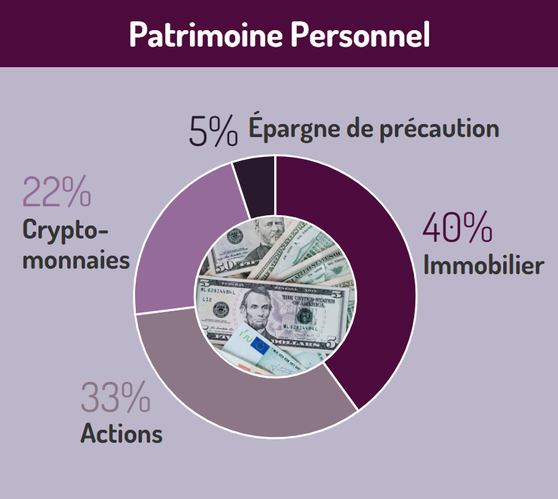 Bien sûr, nous rappelons que chacun doit avoir sa propre allocation patrimoniale selon ses projets et son tempérament. Tout le monde ne pourra pas supporter d’avoir autant d’actions et de cryptomonnaies dans son patrimoine (bonnes perspectives de rentabilité mais risque de perte en capital et sans doute des sueurs froides !)