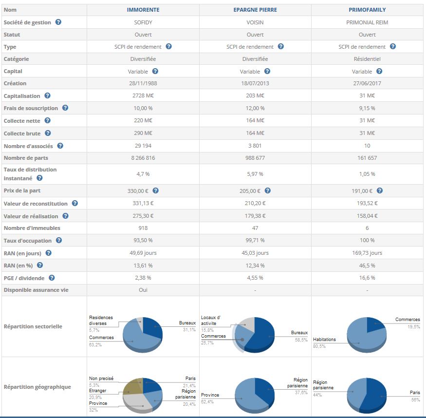 Notez que j’ai obtenu ce tableau comparatif très pratique grâce à l’outil de comparaison SCPI de Primaliance.